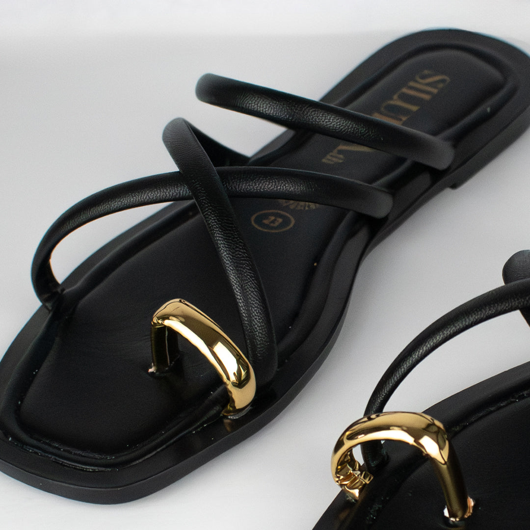 Descubre Cipriana, nuestras sandalias planas que combinan comodidad y estilo con un toque sofisticado. El detalle del anillo dorado eleva cualquier look, aportando un aire chic y elegante. Ideales para disfrutar de este veranito con frescura y distinción.